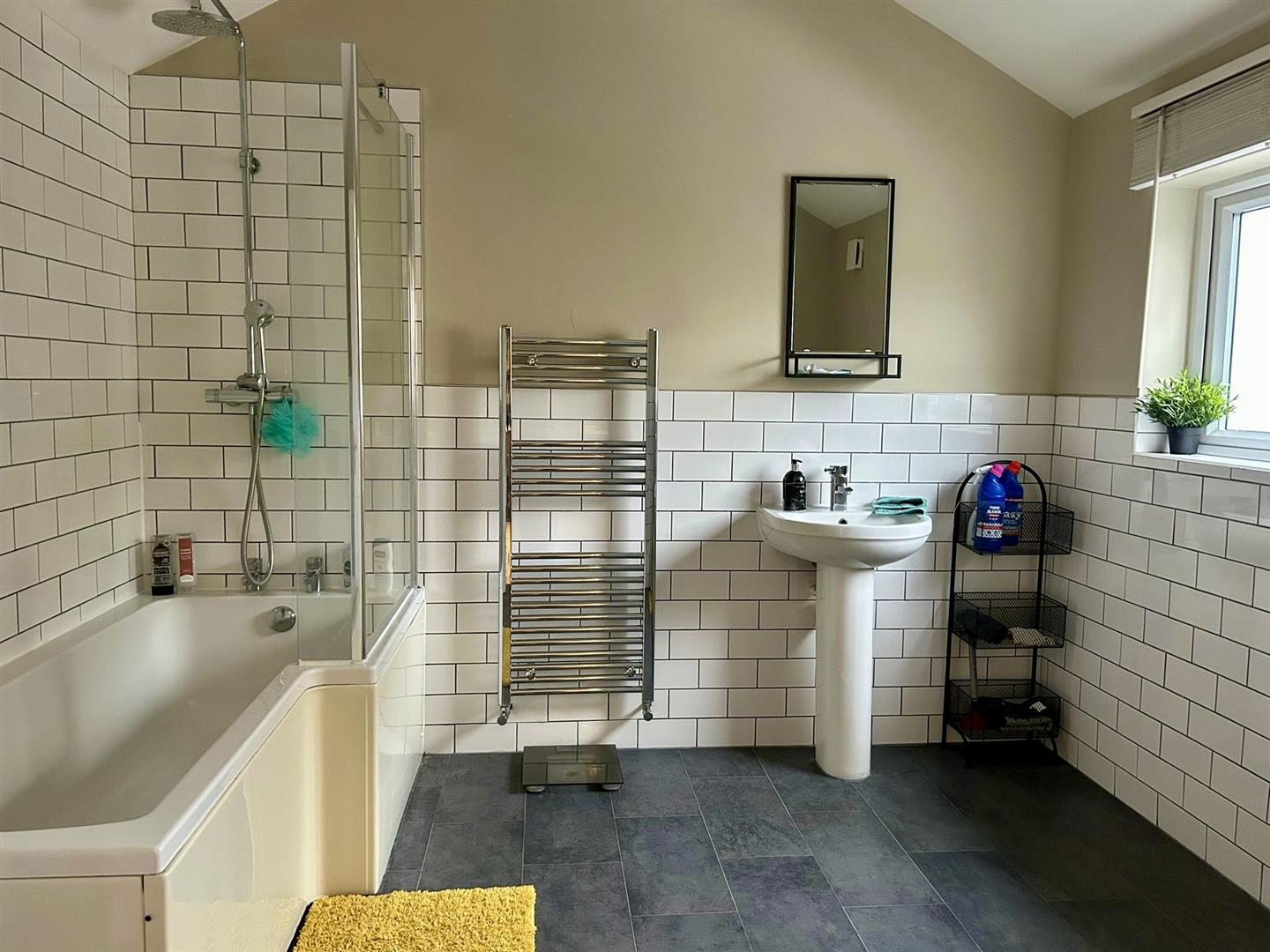Ascend to the upper level, where you will discover a generously sized double bedroom, complete with good storage solutions to keep your living space tidy. The stylish bathroom suite is well-maintained and includes both a bath and an overhead shower, providing a perfect retreat for unwinding after a long day.