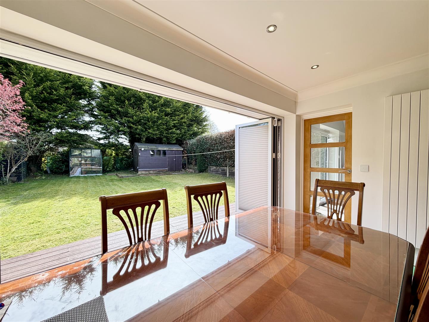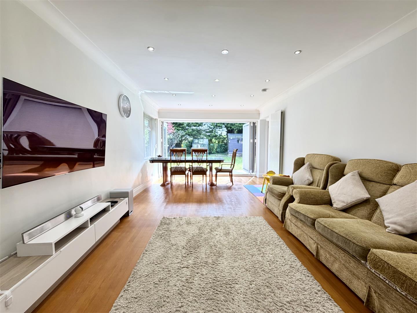 Upon entering, you are welcomed by a well-proportioned reception and dining room, enhanced by bi-folding doors that open onto a tranquil rear garden, perfect for relaxation and entertaining guests. The heart of the home is undoubtedly the stunning kitchen, which features underfloor heating and sleek, modern fittings, creating a warm and inviting space ideal for family gatherings. This area is designed to be both stylish and practical, making it a true hub of the home.